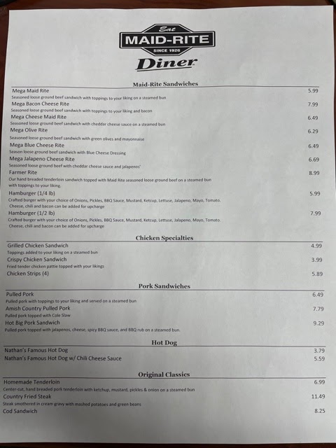 Maid-Rite Menu